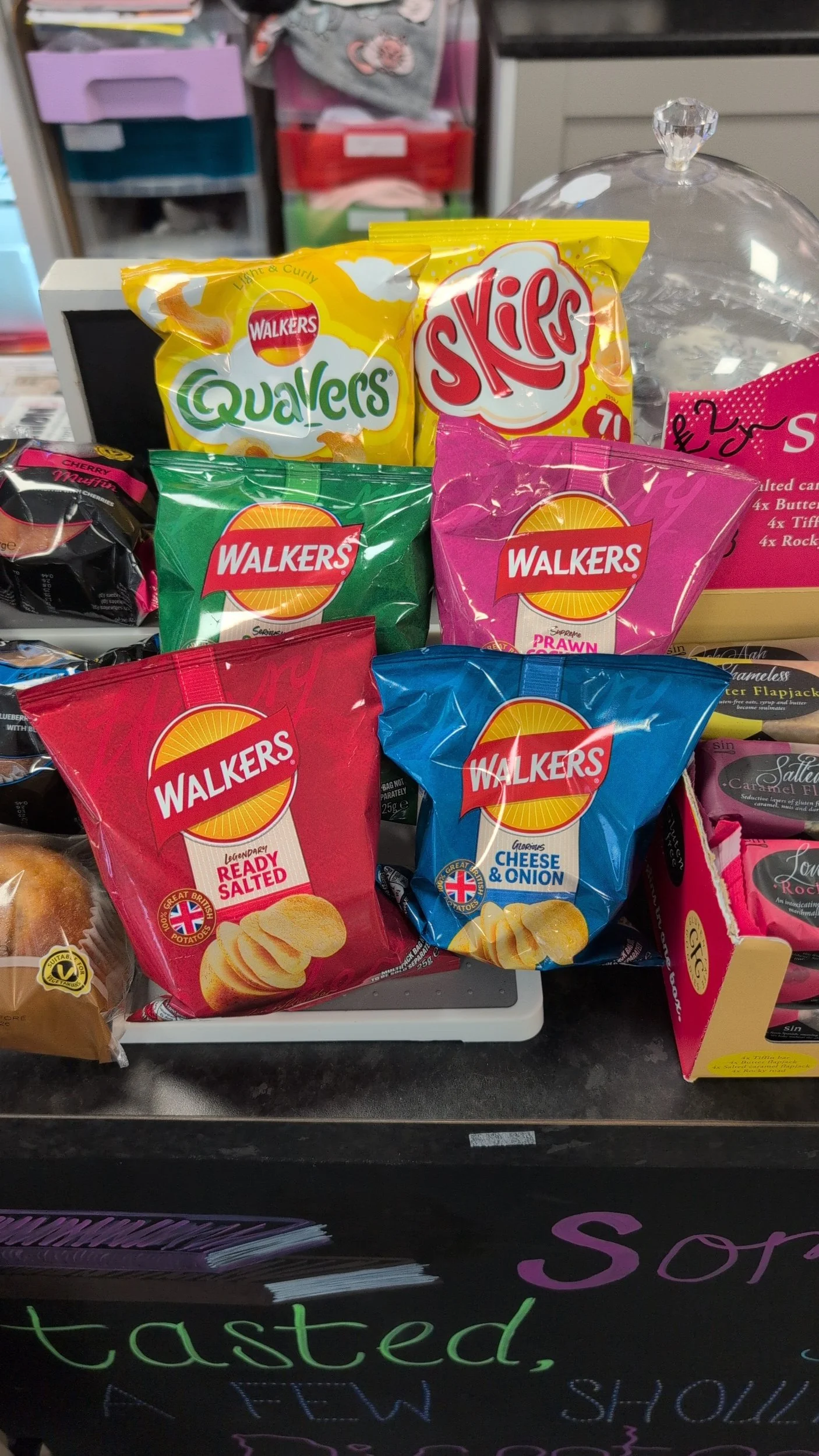 We are now selling Walkers Ready Salted, Salt & Vingear, Cheese & Onion, Prawn Cocktail, Skips & Quavers all on the counter now for only 75p per pack.